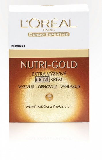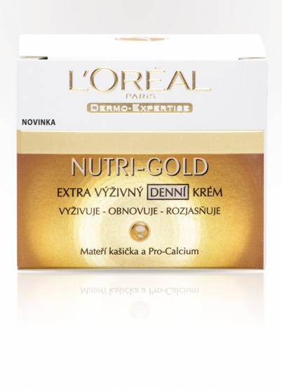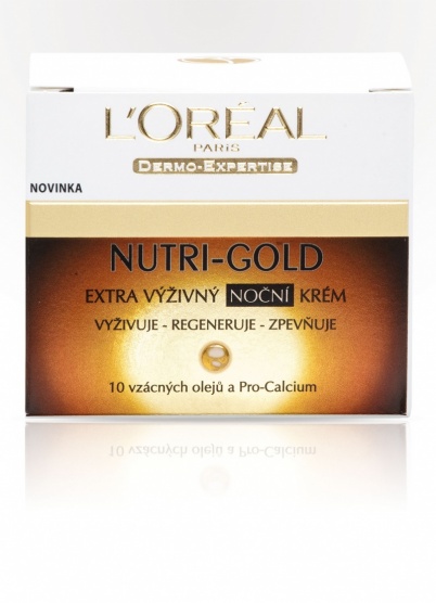L’ORÉAL PARIS představuje Nutri-Gold - tajemství absolutní výživy pro vaši pleť. Luxusní, intenzívně vyživující starostlivost o pleť za cenu, kterou si můžete dovolit. Bohatá textura s včelí mateřskou kašičkou, 10 vzácnými oleji a posilujícím PRO-CALCIOM, se okamžitě vstřebává do pokožky, poskytuje jí intenzívní výživu, regeneraci a ochranu.