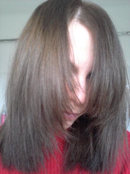 Maminka si všimla, že mám vlasy na světle více měděné na krásném studeném hnědém podkladu. Za mě jednička s hvězdičkou a určitě se k ní budu vracet... ale jak říkám, jde mi o to vlasy zjemnit chemií, neb mě jsou hodně silné a husté a je nemožné s nimi cokoliv dělat pokud jsou v té nejzdravější kondici, nevím co barva udělá se suchými a slabými vlásky.