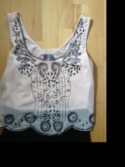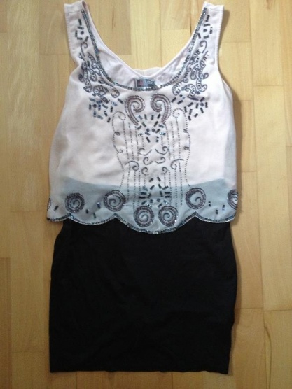 Krásné šatky značky Lipsy London, jako nové. Spodní lem opravený trochu se třepí. Flitrů možná pár chybí ale není znát. Fotka barvu zkresluje, barva vrchní části je lososovo meruňková. Pěkná světlá barvička. Velikost UK 14 US 10 EU 40, mělo by odpovídat M/L. Šaty jsou velmi pružné. Původní cena 55 liber.