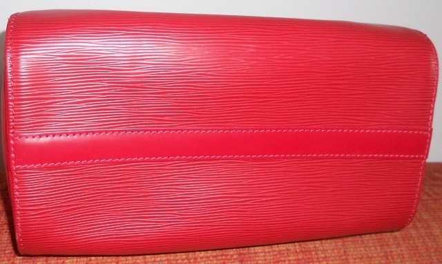 Kabelka byla nošená relativně málo, kůže je stále pevná a bez vad. Při podrobném zkoumání jsem našla jediný malinký škrábaneček. Je detailně vyfocen na jedné z přiložených fotografií. Vnitřek i dno jsou v perfektním stavu. Rohy a hrany taktéž.