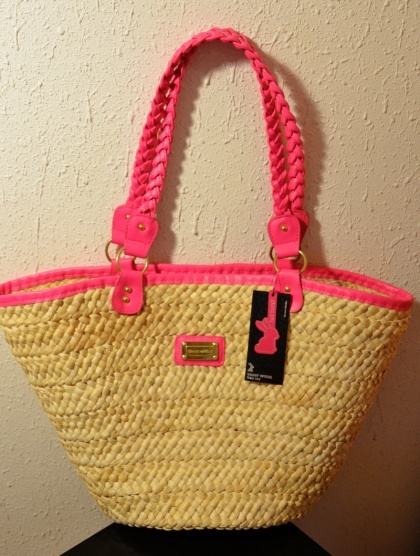 Prodám tuto plážovou - lýkovou tašku, lemovaná neonově růžovou, která je teď in