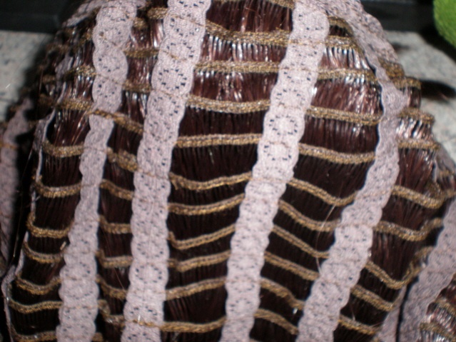 Nad touhle otázkou jsem přemýšlela a nakonec jsem se šla podívat na obyčejnou syntetickou paruku od vietnamců co se mi válí doma. A tahle by předělat šla krásně. Jsou to jednotlivé vlasové tresy přišité ke krajce co je drží ve tvaru.