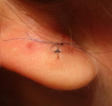 Je to v pohodě. Doktor mi to ucho umrtvil, takže to nebolelo. Jen ke konci to malinko zabolelo jak utahoval ty stehy. Zítra sem dám foto jak to vypadá. Mám tam 2 stehy.