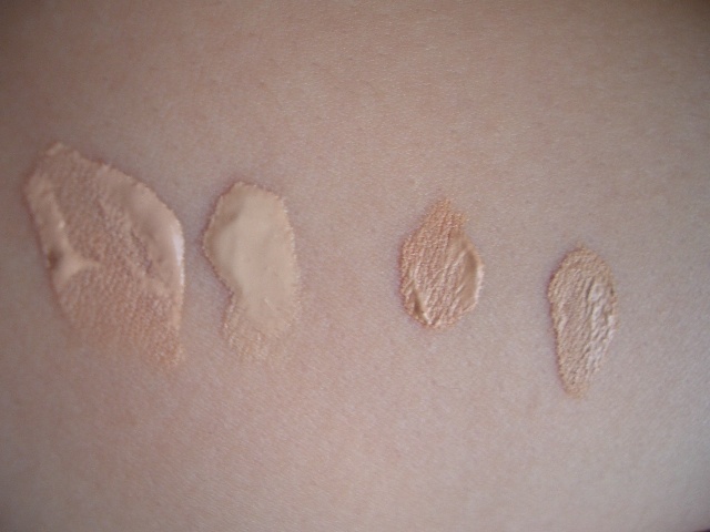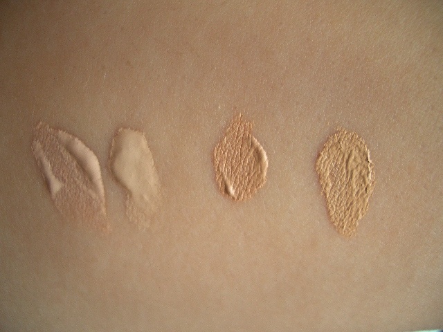 zleva 1. ellen betrix ze SRN, bohužel našemu Max Factor Max Factor Lasting Perfomance 101, vůbec neodpovídá, ten je vedle onoho EB asi jako na mém vzorníku druhý a čtvrtý