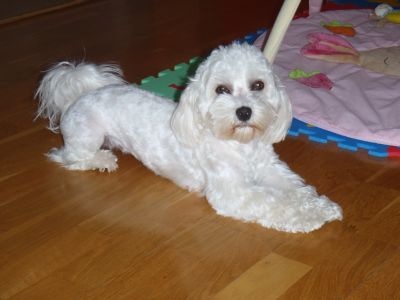 máme mimčo, něco mále přes rok a k němu Hawanskýho psíka. Je to naprosto nekonfliktní plemeno, v životě na nic nezareagovala agresivně, ani na jiné psy, ani když přes ní malá padá, strká jí piškoty do tlamy, bere jí kosti z tlamy. Vím, že ať se stane cokoliv, tak pes nic neudělá. Na cizí vrčí a štěká a dělá hrdinku, ale ani je nekousne.... jsme alergici doma a když jí koupeme každých 14dnů a není plná prachu, tak je to úplně v pohodě a opravdu nepelichá - vypadne jí asi tolik chlupů, jako mě vlasů, takže občas chlup najdu, ale není to jako od krátkosrstýho psa... Taky máme domeček a psík má svoje vrátka, takže je doma kdy chce a když chce ven, tak si jde. Přikládám fotečku. Máme papírovou, protože tím, že může mít jakoukoliv barvu, tak vydávají Hawaňáka za každý chlupatý štěně, ale je to něco mezi Bišonkem a Malézákem