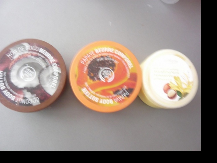 Prodám kokosové máslo The body shop zbývá 1/3, Papaya The body shop zbývá polovina a Oriflame makadamský oříšek celý. Cena všeho včetně pošty je 400kč