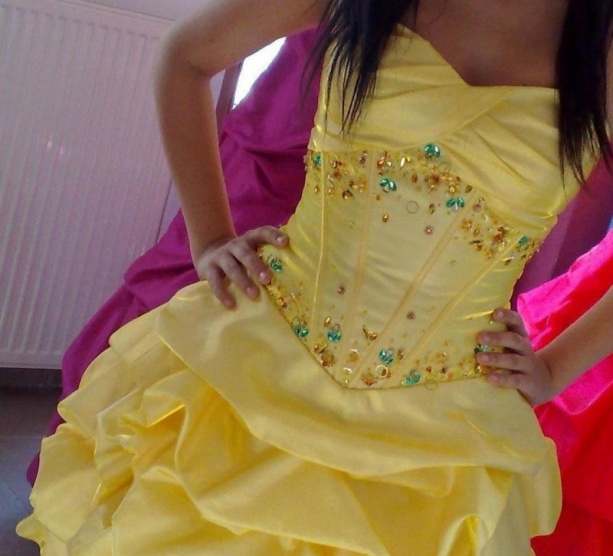 A co nějaké zlaté páskovky- jemné, jednoduché. Pokud tedy neplánuješ silonky. Protože ty žluté boty se budou těžko schánět. A zase zlaté lodičky už by bylo asi moc.