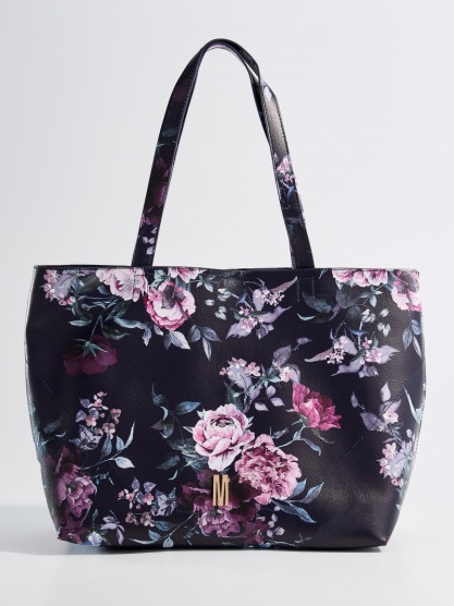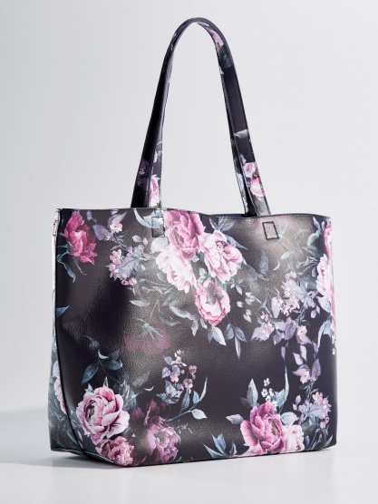 Krásná velká prostorná kabelka s motivem květin, uvnitř je kapsa na drobnosti