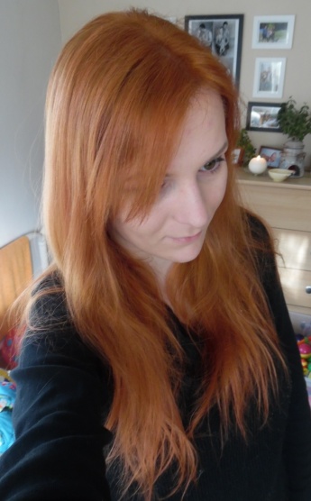 Reaguji na Manu: Včera jsem použila měděnou od Palette De Luxe a namísto rezavé mám vlasy tmavě hnědé s odleskem do červena. Původní barvu jsem měla hodně světlou, tak nechápu proč je tak tmavá. Do té barvy bych znovu nešla.