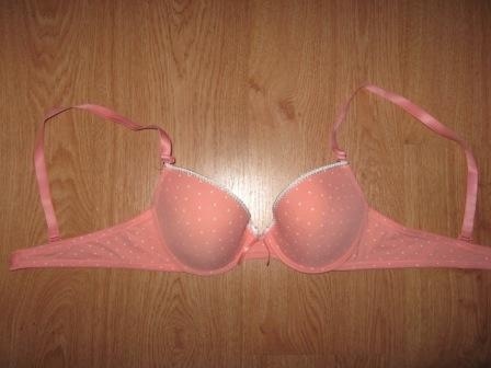 Meruňková podprsenka se srdíčky, cena: 49 Kč, nenošená