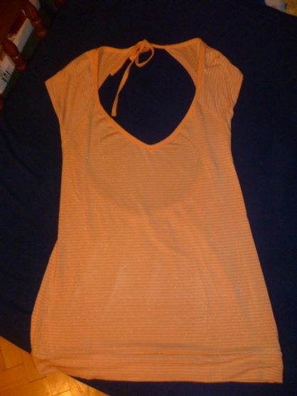 Prodávám tričko z velmi příjemného materiálu a výstřihem v zadní části. Na požádání nafotím i zezadu. Má jemnou světle oranžovou barvu (meruňková) a tenké zlaté proužky. Cena 200 Kč + poštovné. Nebo po domluvě i jinak.