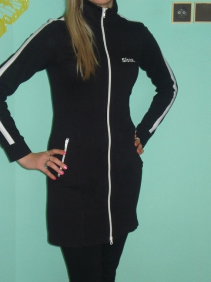 Rozměry: délka: 85 cm, prsa: 41 cm, spodní lem: 51 cm, rukáv od ramene: 67 cm.