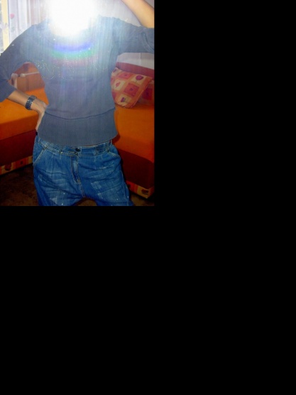 Prodám mikinku zn. Mango v šedé barvě. Má 3/4 rukáv, vpředu je vytvořený nápis Mng Jeans zlatými cvočky (nechybí ani jeden)