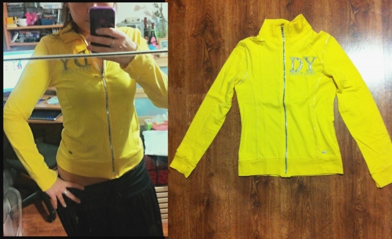0Prodám tuhle nenošenou mikču, tenčí materiál, výrazná žlutá barvička, třpytivý nápis a lesklý zip, super stav, slušivá , velikost sice uvedená L, ale já nosím S,M a je mi akorát