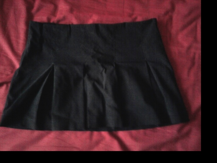 Prodám minimálně nošenou černou mini sukýnku značky Veromoda, vepředu je skládáná (např.jako školní sukýnky) a vzadu rovná. Rozměry délka 32 cm, šířka v pase 39 cm, pružný materiál. Cena 60 kč + poštovné.