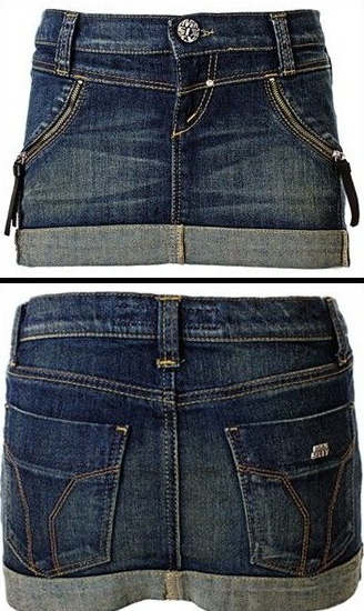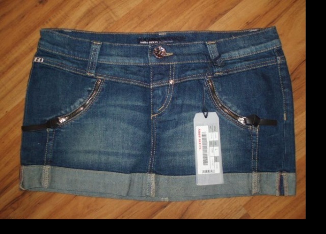 Džínová mini Miss Sixty. Materiál je psaný bavlna a elastan. Hodně krátká a boková.