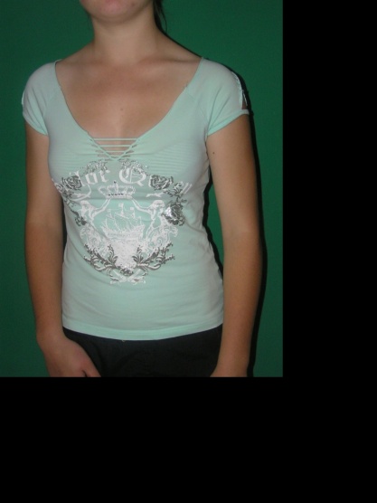 Krásné tričko v barvě mint. Velmi pružný,příjemný materiál. S potiskem a průřezy. Originální kousek v moc dobrém stavu. Velikost S-M, rozměry : délka 52 cm, šířka 2x 39 cm (pružné,měřeno v klidovém stavu)