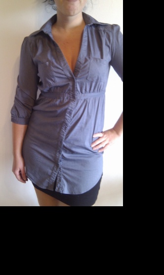 0Modrá košile se zavazováním na zádech. Je zajímavého střihu, rukávy se dají připnout knoflíkem a zmenší se o polovinu. Nabízím za cenu 180Kč.