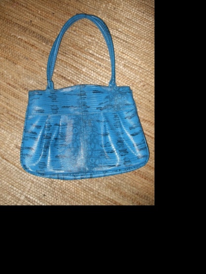 Sitě modrá, pevná, zavírání zipem.Široká 34cm, uvnitř příjemná semišová.