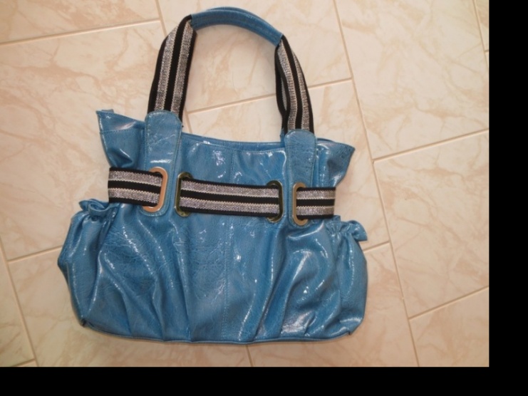 Modrá lesklá kabelka v perfektním stavu. rozměry: délka 37 cm výška 28 cm délka uší 22 cmmateriál: umělá kůže