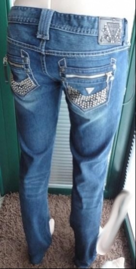 Nabízím 2 x vzaté kalhoty Guess. Mají cvoky na zadních kapsách a logo.Pas 42 cm, boky 46 cm, přední sed 19 cm, stehno 26 cm, délka nohavice 103 cm. Materiál: 98 % bavlna, 2% elastan. Jsou úžasné, ale bohužel neunosím. Barva tmavší než na fotce. PC 4690,-
