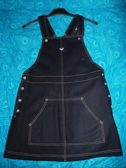 Pěkná, nová šatovka Roxy. Velikost psaná 2,ale nevim co to znamená. Sestra mám 38/40 a je jí dobře. Bohužel mě je velká. Je tmavě modrá, materiál flauš,ale podšívka je příjmnější materiál,nevím co přesně. Vepředu je klokaní kapsa, na boku po čtyřech cvočcích na zapínání. Ramínka se také zapínají na cvočky.