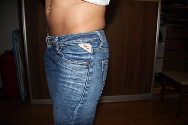 Prodám krásně zbarvené a sexy jeany Replay koupené v Itálii v ofiko obchodě za 4000,-.Profesionálně zkráceny na 96cm.Velikost je uvedena 26,ale odpovídají Replay 25.Pas 36cm.Na zadní části trochu pustila kůže,viz foto.