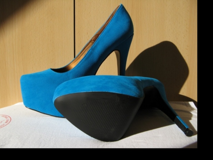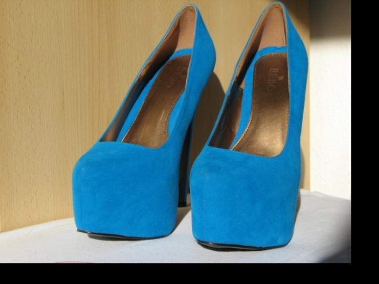 Prodám nové, nenošené, modré lodičky, vel. 41. Platforma má 4cm, podpatek je vysoký 16cm.