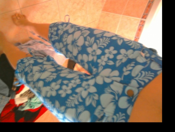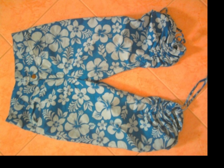 Modré plátěné kalhoty s Hawaiskými květy