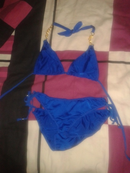 Uplně nové modré plavky vel. M. Nesedla velikost posílám dál. Tady je odkaz na fotku na postavě http://i.ebayimg.com/t/Sexy-Lingerie-Bikini-Swimsu it-Swimwear-Chain-Blue-H2803-/00/s/NTAwWDUwMA==/$( KGrHqR,!ncE63T0+ByzBO-BhCc(Dw~~60_12.JPG. Rozměry: Kalhotky 65 cm, ale jsou volitelné na šňůrku, takže si je člověk může natáhnout jak chce. 65 cm je když jsou zavázené na doraz. Délka podprsenky: 100cm, zase se dá libovolně zavázat. Velikost bych řekla, že sedí jak na velikost S tak i M, možná i L. Podprsenka není vycpaná, ale bez problémů se tam dají vycpávky našít.