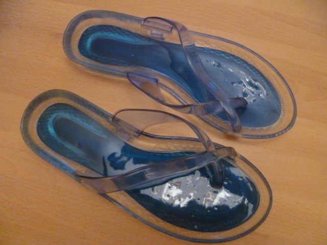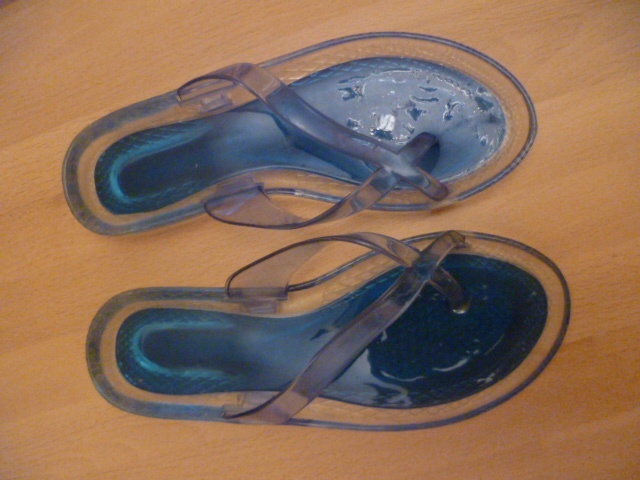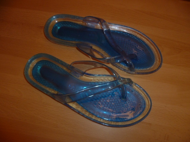 0Jsou málo nošené, hezky průhledné s modrým. Z umělé hmoty. Mám je ve velikosti 38 a 39, takže si můžete vybrat. Prodám za 150 Kč i s poštou.