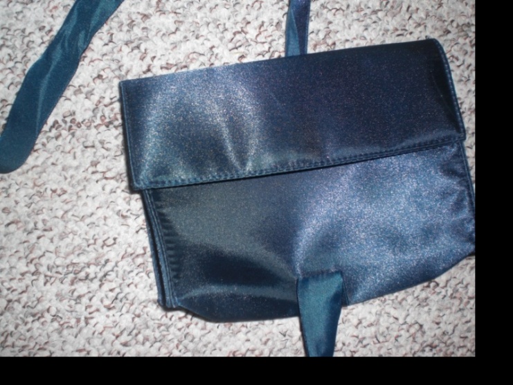 Malé modré psaníčko do ruky. Prodávám levně, protože jak je vidno na fotkách, na psaníčku jsou zespoda bílé skvrnky-nevím od čeho. A malý puntík vzadu. Ale zepředu nic není, tak to při nošení není vidět.