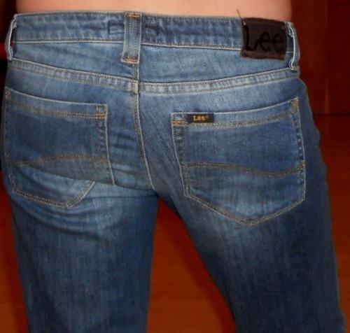 0Nabízím tmavě modré rifle zn.LEE do zvonu, vzadu 2x logo, nošené asi 5x
