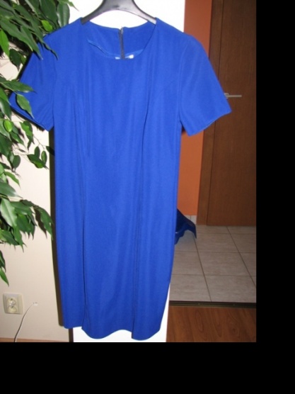Prodám krásně modré společenské šaty nad kolena s malými rozparky, vzadu zip. Nošené asi 2x, naprosto v pořádku. Velikost psaná 36 (bejvávalo