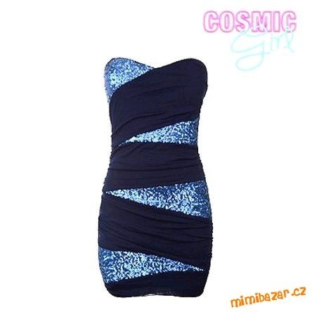 Nové modré šatičky,délka 75 cm,pro hubenou slečnu,prsa max 88 cm,pas max 65 cm,boky max.90 cm,natáhnou se,nebyly ani jednou nošené,propásla jsem plesy