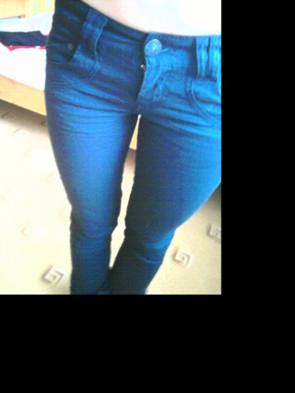 Džíny jsou na sluničku krásně modré jako je vidět na prvních fotkách ,běžně "ve stínu" jsou tmavší jako je vidět na dalších .