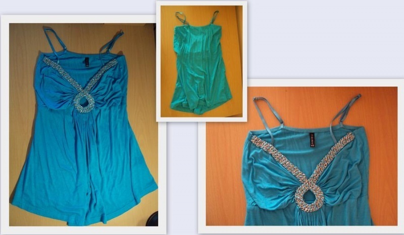 Prodám jen jednou oblečené a vyprané tílko Amisu (New Yorker), velikost XS. Vepředu má našitou efektní "brož". Je z příjemného lehkého materiálu, zdůrazňuje vršek a spodek je volnější, takže nedělá nepěkné bříško zato dělá krásný dekolt... Ramínka jsou nastavitelná podle vaší potřeby. Cena 190 korun včetně doporučené pošty.
