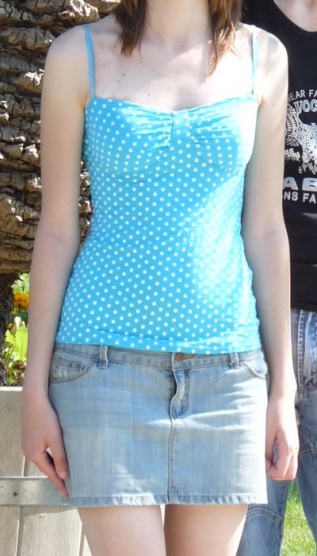 Prodám modré puntíkované tílko na ramínka z NY.Velikost uvedena M, ale tílko je dost pružné přizpůsobí se.Já jsem hodně hubená a kupuji si trika velikosti i XS takže toto tílko obleče více velikostních kategorií.Měla jsem ho na sobě pouze jednou takže je jako nové.