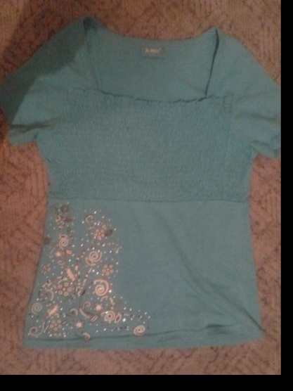 prodávám nenošené tričko z Kiku,krásné detaily.PC 300 prodávám za 80.při rychlém jednání sleva.Na obrázku je barva vybledlá(foceno přes mobil) ve skutečnosti je krásná modrá,pro zájemce možnost dalších fotek