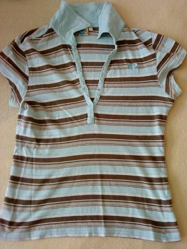 Tričko je pruhované s krátkým rukávem a límečkem. Kupované v originálním obchodě Roxy. Nošené. Cena 100 Kč + pošta
