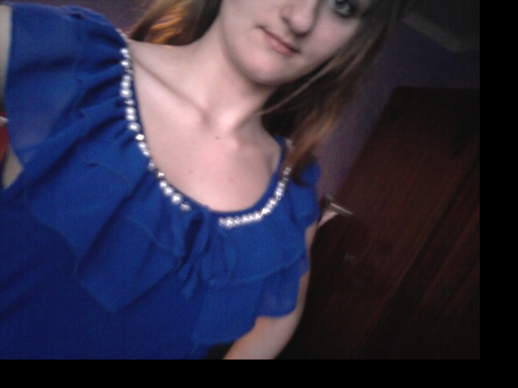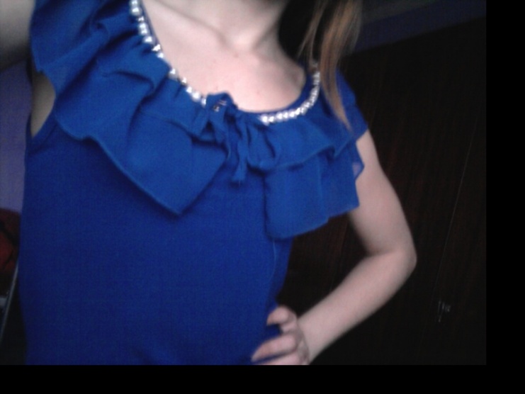 Nádherné modré tričko s perlami je asi tak 10x nošené