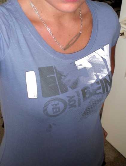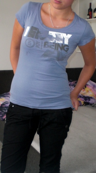 Modré tričko velikosti S, zakoupeno asi před rokem v TimeOutu.