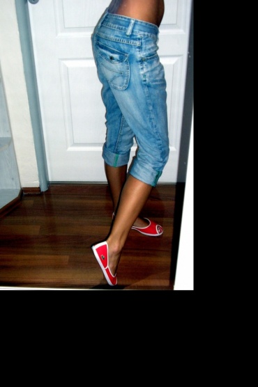 Prodám modré džínové tříčtvrteční kalhoty značky Diverse. Velikost 26. Vzadu jsou kapsičky na cvoky. Vpravo vzadu je nápaditá bílo-stříbrná nášivka. Mají hezkou světle modrou barvu.