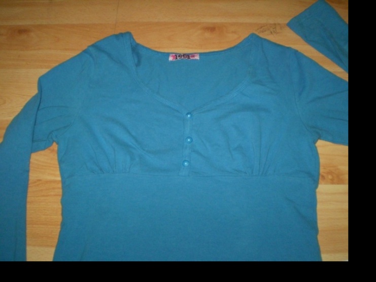 0Prodávám modré triko s dlouhým rukávem. Výstřih do V se třemi knoflíčky. Použité, ale v dobrém stavu. Pište pro případné dotazy nebo více fotek