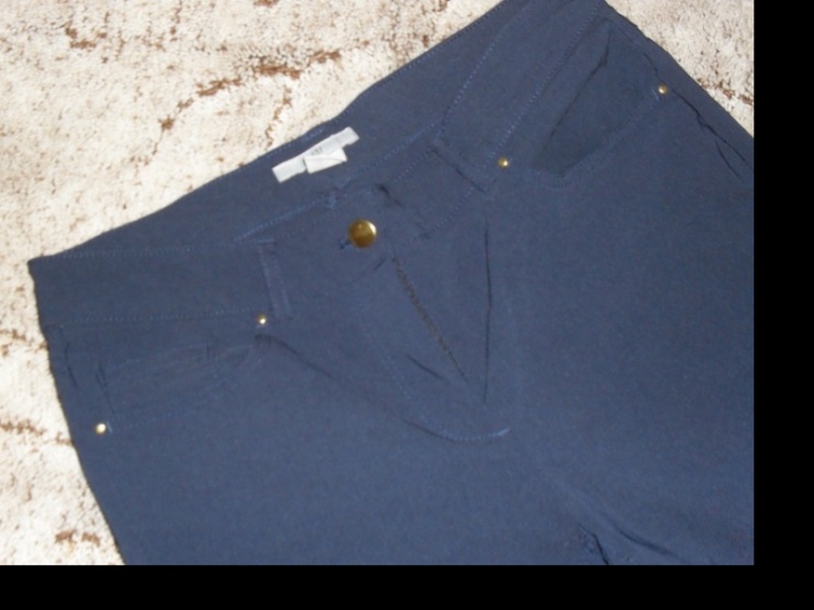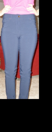 Krásné tmavě modré kalhoty ze super materiálu...jsou úžasně pohodlné a navíc mají vysoký pas, mě jsou bohužel velké...velikost 38 US 8 trošku pružííí
