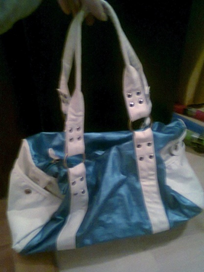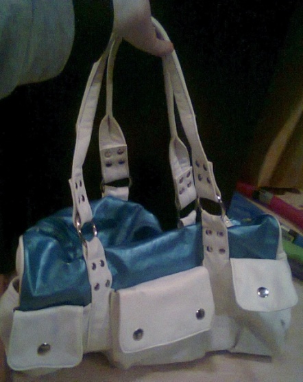 Nabízím tuto kabelku. Sice jsem ji měla jen jednou, ale ve skříni se mi trochu obarvila od červené kabelky (viz foto). Tudíž tak nízká cena - 100 Kč. Zvenku i uvnitř řada malých i větších kapsiček, zapínání na zip. Poštovné a balné 80 Kč.