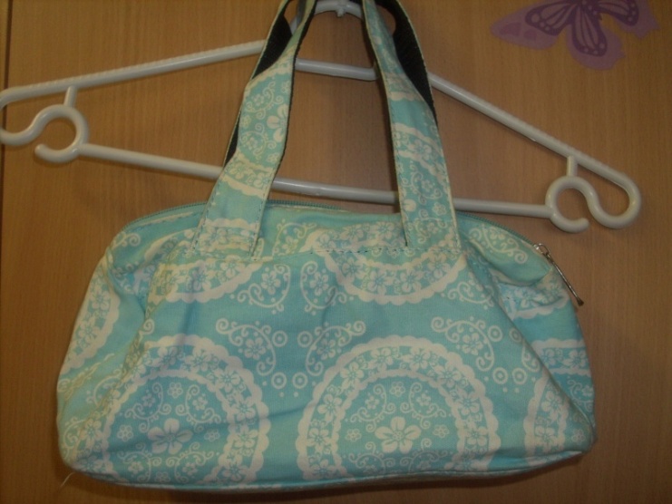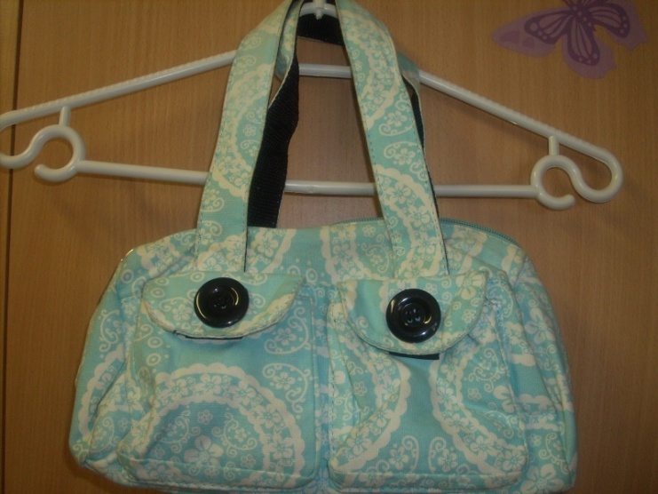 0Krásná sportovní modro bílá kabelka. Vepředu má dvě funkční kapsičky na suchý zip.