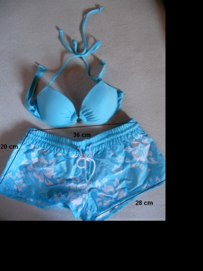 0Nabízím tyto nenošené modrobílé plavky koupeny v New Yorkeru minulý rok. Já mám prsa 75B, u spodního dílu jsou míry uvedeny na fotce, ale na štítku je 38.