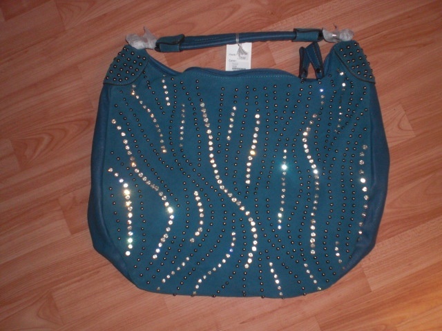 kabelka je s kamínky a cvočky,dvojtým zipem a kapsami vevnitř a na boku