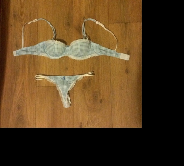 Krásný set spodního prádla ve světle modré kostce, pouze odzkoušené! Nenošené.